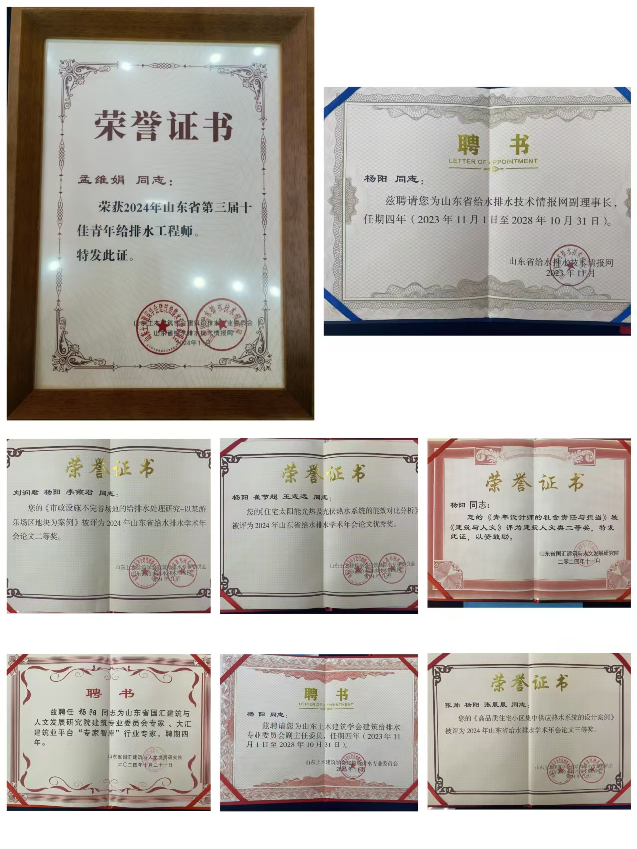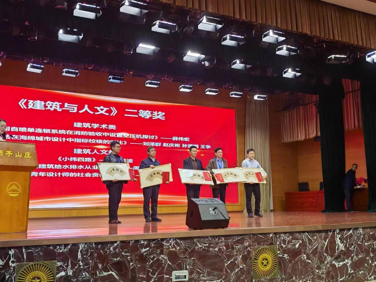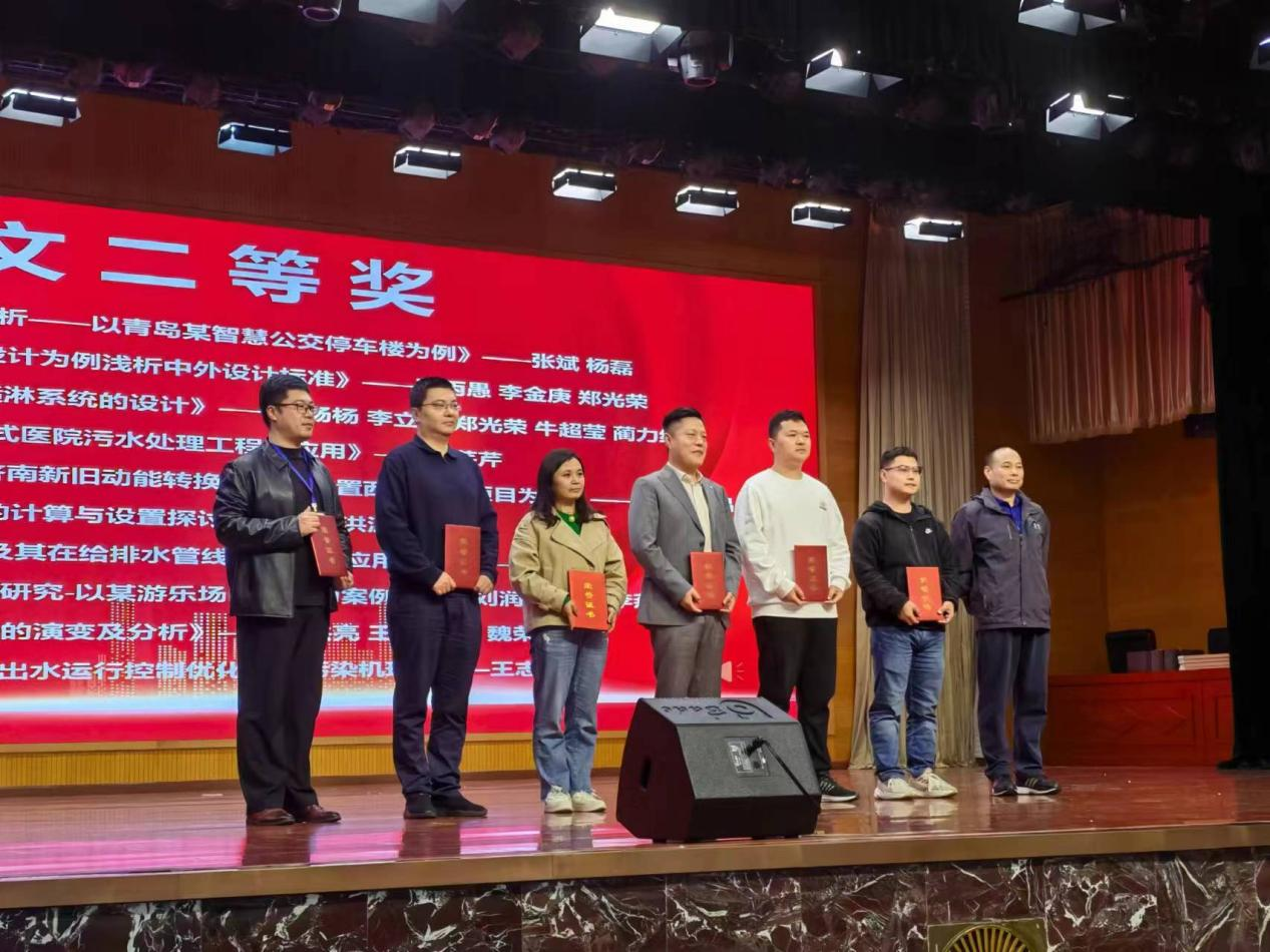 各位專業(yè)人員齊聚年會,圍繞給排水行業(yè)發(fā)展,分享各自實(shí)踐經(jīng)驗(yàn),探尋行業(yè)高質(zhì)量發(fā)展的方法與途徑。我公司給排水設(shè)計(jì)人員榮獲多個獎項(xiàng)。孟維娟榮獲“山東省十佳青年給排水工程師”稱號。楊陽被聘為山東土木建筑學(xué)會建筑給排水專業(yè)委員會副主任委員、山東省給水排水技術(shù)情報(bào)網(wǎng)副理事長、山東省國匯建筑與人文發(fā)展研究院建筑專業(yè)委員會專家、大匯建筑業(yè)平臺“專家智庫”行業(yè)專家。劉潤君、楊陽、李燕君撰寫論文《市政設(shè)施不完善場地的給排水處理研究-以某游樂場區(qū)地塊為案例》被評為 2024年山東省給水排水學(xué)術(shù)年會論文二等獎。張帥、楊陽、張晨晨撰寫的論文《高品質(zhì)住宅小區(qū)集中供應(yīng)熱水系統(tǒng)的設(shè)計(jì)案例》被評為 2024 年山東省給水排水學(xué)術(shù)年會論文三等獎。楊陽、崔節(jié)超、王志遠(yuǎn)撰寫的論文《住宅太陽能光熱及光伏熱水系統(tǒng)的能效對比分析》被評為2024年山東省給水排水學(xué)術(shù)年會論文優(yōu)秀獎。楊陽撰寫的《青年設(shè)計(jì)師的社會責(zé)任與擔(dān)當(dāng)》被《建筑與人文》評為建筑人文類二等獎。