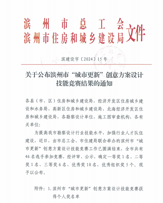 公司多人在濱州市“城市更新”創(chuàng)意方案設(shè)計(jì)技能競賽取得優(yōu)異成績